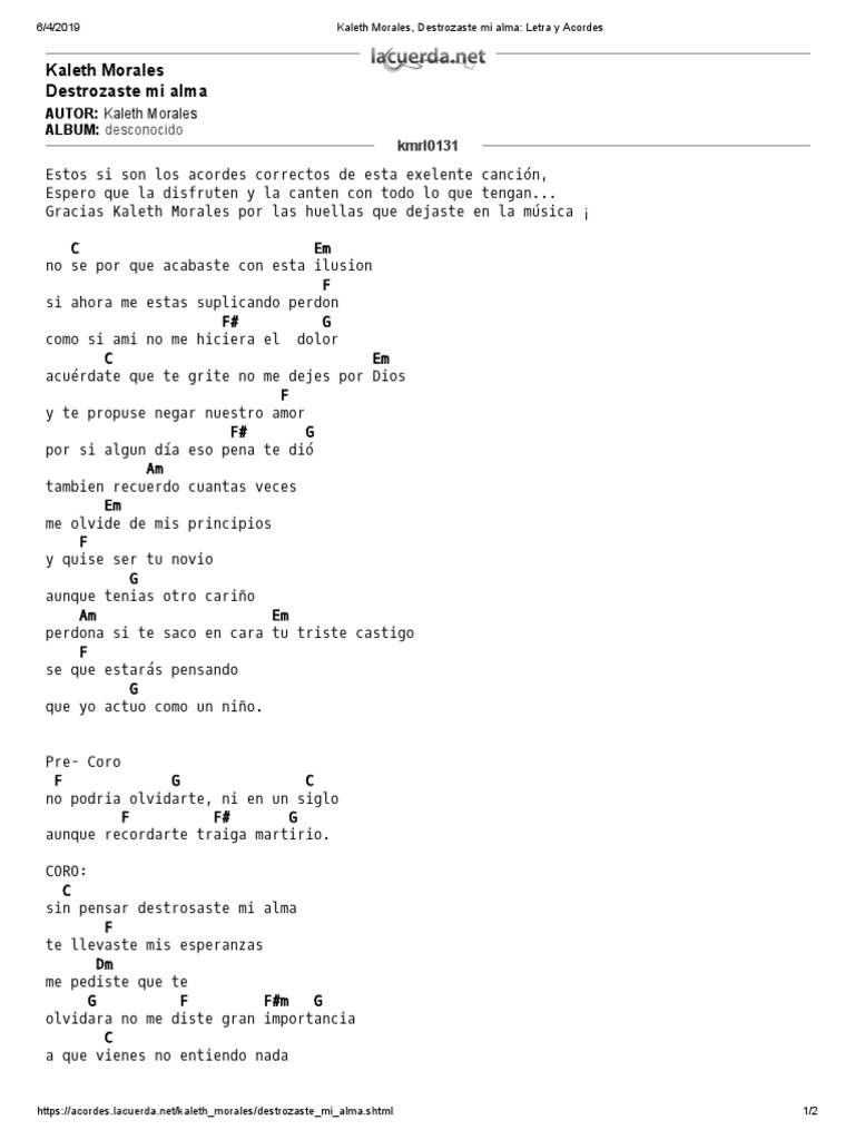Kaleth Morales Destrozaste Mi Alma Letra Y Acordes Pdf Alma Amor